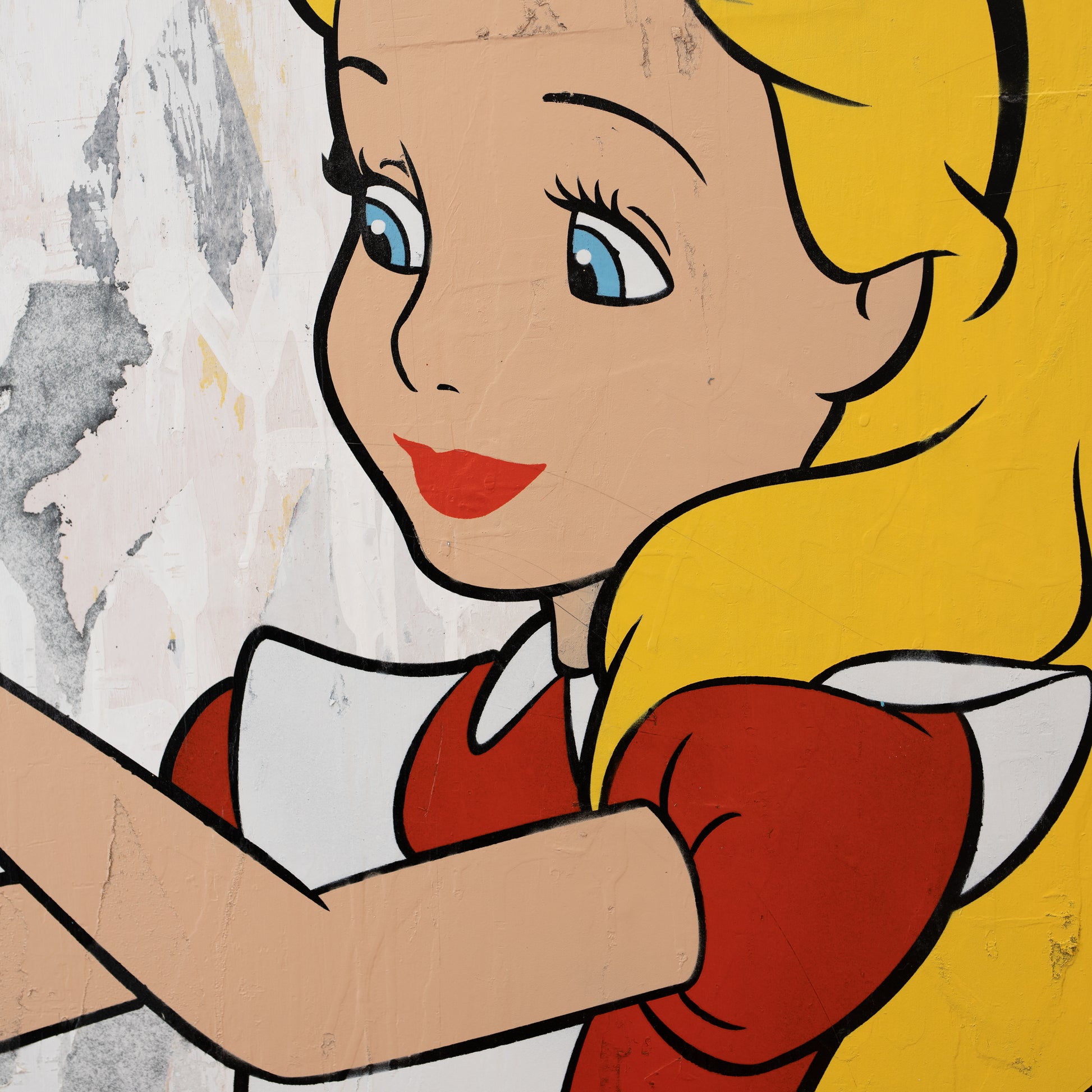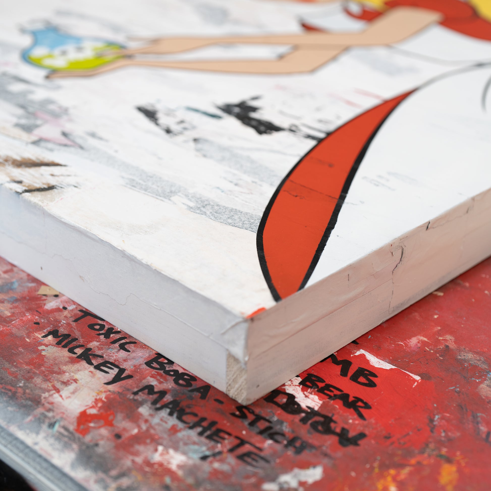 36" x 36 " x 2.5" mixed media. Made with NYC salvaged street posters, acrylic and acid free archival spray paint on cradled wood panel.